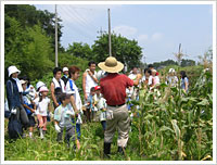 昨年に引き続き、稲作コース(田植え、草取り、稲刈り、脱穀)と畑作コース (大豆、そば、野菜収穫)の2コースを設けました。 畑作コースにおいては、種まきからそば打ち、豆腐作りまでと、一連の流れを捉えたプログラムとなっています。 本年は、菊坂町会(約40名)も田植え、稲刈りに参加し、お米作り参加者 のべ人数は260名、今期の農業体験全参加は50家族を超える規模となりました。